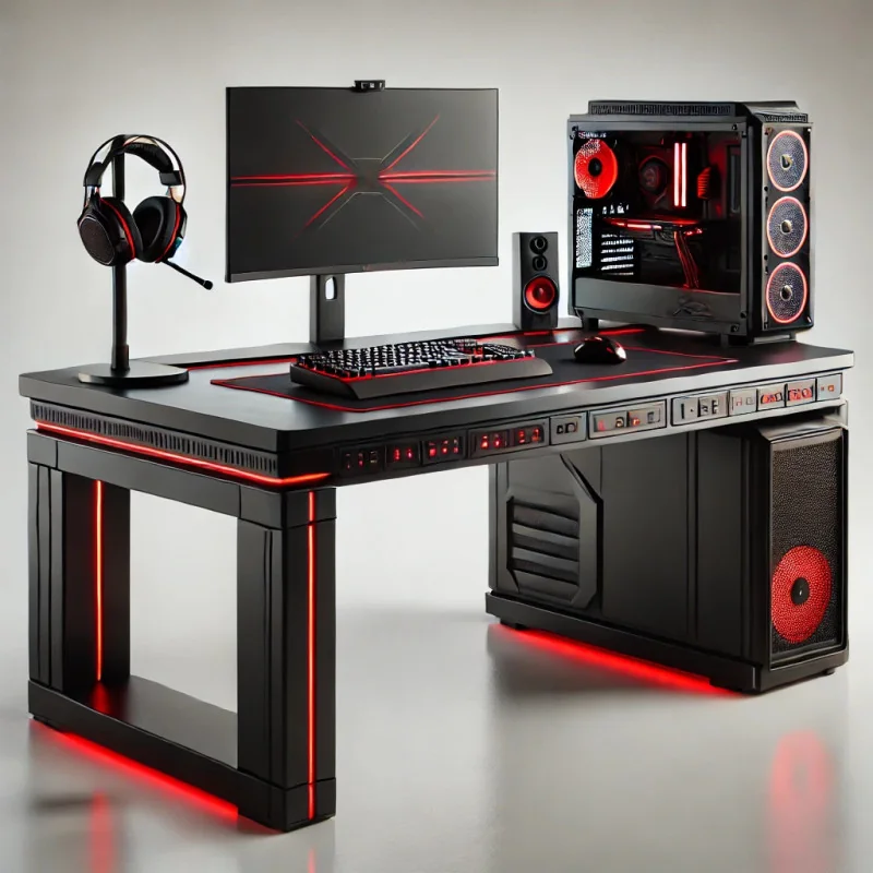 Nowoczesne biurko gamingowe zaprojektowane z myślą o graczach. Wyposażone w uchwyt na słuchawki, wbudowane podświetlenie LED i dużą powierzchnię na sprzęt. Solidna konstrukcja zapewnia stabilność nawet podczas intensywnych rozgrywek.